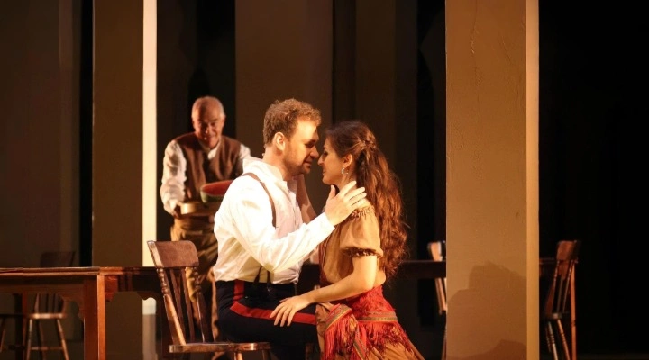 На сцене показывают судьбы главных героев на фоне испанской Севильи. История рассказывает о любви и свободе, каждый персонаж делает свой выбор. В первом действии сержант Хозе встречает Кармен, цыганку с сильным характером. В следующих эпизодах появляются её друзья и соперники — тореадор Эскамильо и лейтенант Цунига. Отношения между героями приводят к трагическому финалу. Спектакль идет достаточно долго, чтобы зрители полностью погрузились в атмосферу оперы..